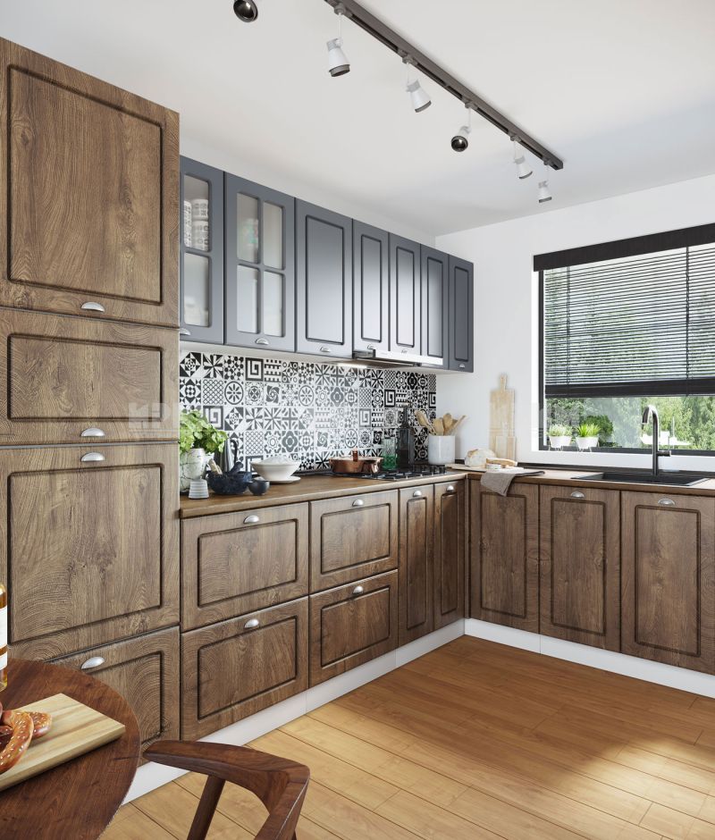 Цвят : мдф цимент мат и дъб натурал ( лице ) / бяло гладко ( корпус ) / дъб коняк ( термоплот )